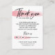 Desliza estas tarjetas bonitas en tu pedido para darte un agradecimiento extra a tu cliente y dar una impresión profesional a tu pequeña empresa o tienda de comestibles. Una buena nota de agradecimiento al cliente por su compra no sólo apreciará su confianza en usted sino que los traerá de vuelta por más! Este diseño presenta un "gracias" negro en letra negrita escrita a mano contra trazos de rosa metálico falso (efecto impreso). Incluye tres íconos de medios sociales (extraíbles) y un campo para tu nombre de usuario, contacto y mensaje personal con código de descuento. Puede agregar fácilmente su CÓDIGO QR en la parte posterior.