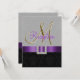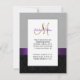 La elegancia sofisticada es transmitida por este hermoso diseño de invitación a la recepción de boda. Un patrón de damasco gris y negro sobre negro sirve de fondo para un efecto de foto de la inicial M en dorado metálico y una cinta de satén púrpura y un broche de diamantes TODO IMPRESO en una tarjeta plana. Una forma perfecta de invitar a sus invitados a la recepción de su boda. Patrón de damasco contemporáneo, pero clásico con un diseño que le permite personalizar la parte frontal con sus nombres o la palabra "recepción" y la parte posterior está libre para agregar el texto de su invitación de recepción de boda personalizada. La invitación de boda está configurada para la inicial del monograma "M". Para otras letras, por favor contacte al diseñador en luxuryweddinginvitations@gmail.com. Diseño de Elke Clarke©. Gráficos licenciados. Además, elija entre