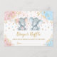 Tarjeta Rubor suave rosa, azul y dorada doble elefante temática Diaper Raffle