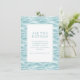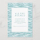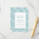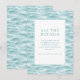 Esta tarjeta de acompañamiento para bodas presenta un diseño sereno y moderno con un cuadrado blanco central enmarcado por una delgada línea turquesa, colocado sobre un fondo texturizado de agua ondulada en tonos suaves de azul y turquesa. El estilo minimalista enfatiza la claridad y la simplicidad, utilizando tipografía serif elegante para resaltar el título principal "TODOS LOS DETALLES" y guiar a los invitados a visitar un sitio web personalizable para obtener más información. La paleta de colores tranquilos y la representación abstracta del agua crean un ambiente sereno, lo que la hace perfecta para proporcionar detalles del evento mientras evoca una sensación de anticipación y elegancia.