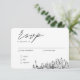 Tarjeta de respuesta de boda con guion minimalista clásico personalizada con su información. Ingrese a la herramienta de diseño de Zazzle para personalizar aún más, como la ubicación del texto o agregar una cuarta opción de comida. Asegúrese de comparar los diferentes tipos de papel para seleccionar su textura favorita y revisar la colección completa para comprar sobres de envío coincidentes.
