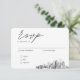 Tarjeta de gabinete RSVP para la boda de escritura minimalista clásica personalizada con su información. Introduzca la herramienta de diseño de Zazzle para una mayor personalización, como la colocación de texto o para añadir una cuarta opción de menú. Asegúrese de comparar los diferentes tipos de papel para seleccionar su textura favorita y compruebe la colección completa para comprar sobres de correo coincidentes.