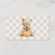 Para una divertida y práctica actividad en la ducha de bebé, añada esta tarjeta de gabinete de rifas de pañales con sus invitaciones para la ducha de bebé. Cada invitado trae un paquete de pañales a la ducha para tener la oportunidad de ganar un premio. Diseñada pensando en los niños pequeños, esta tarjeta tiene un lindo oso de peluche con un montón de globos. La parte trasera de la tarjeta tiene al oso sentado con una calabaza de otoño sobre un patrón de gingham beige neutro.