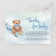 Tarjeta De Recepción Oso de peluche y libros de flores azules para bebé