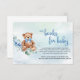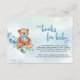 Tarjeta De Recepción Oso de peluche y libros de flores azules para bebé
