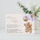 Tarjeta De Recepción Oso De Teddy, Globos Morados, Libros Para Bebés