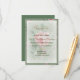 Esta invitación está elegantemente diseñada con un sencillo tema de rosas verdes y rosadas vintage en mente. Personalice con su información, o personalícela haciendo clic en el botón "personalizar" para cambiar cualquiera de los elementos. La parte trasera de la invitación es de un tono verde a juego.
