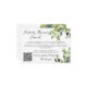 Esta elegante y minimalista tarjeta de gabinete con código qr a su sitio web boda le ayudará a solicitar un regalo en efectivo para su fondo para siempre en lugar de regalos tradicionales. La tarjeta del recinto está decorada con magníficos eucaliptos acuáticos, otras zonas verdes, productos botánicos y follaje en diversos tonos y tonos verdes. Elegante caligrafía de escritura para la tipografía de la tarjeta de gabinete y fuente serif simple y fácil de leer para el sitio web boda, el novio y los nombres de la novia.