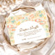 A whimsical watercolor design featuring a playful mix of pastel summer animals surrounded by tropical leaves, seashells, starfish, and soft botanical details. The cheerful palette of peach, mint, coral, and soft blue creates a light storybook atmosphere, while the elegant arch layout keeps the celebration details beautifully framed and easy to read. Perfect for a warm, joyful summer celebration with a charming nursery aesthetic.