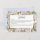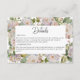 El diseño de esta tarjeta de detalles de boda es sencillo pero elegante y cuenta con un hermoso fondo hidrato floral de tonos rosa polvorientos, blues y perwinkle y violetas con vegetación. El texto se muestra en un fondo blanco arqueado y el diseño se completa con la primera inicial de la novia y el novio. Este diseño forma parte de la suite de tarjetas de boda rústico Pastel Hydrangea Floral Monograma. Creado por Simply Farmhouse Press.