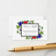 El diseño presenta flores de anémona pandas, blancas y azules patrióticas con eucalipto verde sobre un marco de color gris carbón.