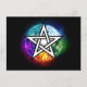 Pentagrama luminoso de dibujo artístico con cinco elementos mágicos, agua, tierra, fuego, astral, aire sobre fondo negro. Pentagrama de Wiccan. Wicca