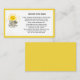 Complete sus invitaciones para ducharse con nuestra "Tarjeta de Purpurina de Rayo Pequeño de Sol". Diseñada para coincidir con el tema radiante de su evento, esta tarjeta presenta tonos amarillos soleados y un toque de purpurina para añadir un poco de brillo. Perfecto para compartir detalles adicionales con sus invitados, ya sean direcciones, información del registro o una solicitud especial como llevar un libro en lugar de una tarjeta. Cada tarjeta del recinto es de personalizable, por lo que es fácil incluir todos los detalles esenciales para su celebración brillante y alegre. ¡Una forma deliciosa de garantizar que todos los aspectos de la ducha de bebé brillan!