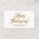 Feliz texto del guión del personalizado de Acción de Gracias y nombre la elegante y bonita tarjeta del recinto del Día de Acción de Gracias. Tipografía elegante de caligrafía de escritura. Texto completo de especias de calabaza naranja de personalizable, fondo blanco, naranja de calabaza. La tarjeta es sencilla y elegante y también se puede utilizar en un entorno profesional, de negocios, de oficina, ya que es totalmente personalizable.
