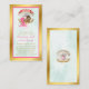 Sirena de bebé durmiendo en una caparazón de almeja dorada rodeada de perlas. Aleta rosada de cola y tiara dorada y rosa. Cartel en la concha que dice "Precioso". Fondo de la Fábrica de la Moneda.
