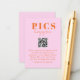 Modern pink, orange font, wedding "Pics Happen" QR Code, Photo-Gallery-Website, QR-Code, Enclosure Card. Personalized with your names, photo-gallery-website, scannable QR code and message to keep your friends and family up to date about your upcoming special day.