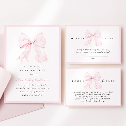 Minimal Pink Bow Baby Shower 2026Diseñado por Adrienn Maier