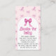 Tarjeta De Recepción Pink Bow Books Baby Shower