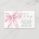 Pink Bow Elegant Calligraphy Book para entradas para bebés Artículos de juego de tarjetas de presentación disponibles.