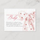 Pink Bow Strawberries Baby Shower Books para la Tarjeta de Alojamiento para Bebés