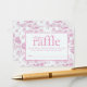 Celebra la futura madre con estas elegantes tarjetas de inserción de rifas de pañales inspiradas en la tela francesa rosa. Esta tarjeta Baby Shower de rifa de pañales de flores rosadas se puede personalizar con sus propios detalles. Elige tenerlos impresos, recibir como descarga digital o ambos!