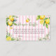 Tarjeta De Recepción Pink Citrus Lemon Baby Shower Diaper Raffle