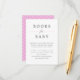 Clásica, elegante tipografía y dulces detalles en color rosa de caramelo hacen de esta tarjeta de inserción de la suite de solicitud de un libro de ducha una elección fácil para muchas suites temáticas de ducha y el texto flexible es fácil de modificar.