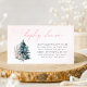 Complete your winter baby shower set with this Display Shower card featuring delicate silver snowflakes, a classic green Christmas tree, and a frosty pink background. Ideal for including with your invitations to let guests know gifts will be displayed unwrapped. Easily customize your message and event details.