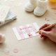 This adorable 'Books for Baby' enclosure card is the perfect way to encourage guests to bring a book instead of a card to celebrate your new arrival. Featuring a charming pink and white stripe pattern and sweet cherry illustration, this card adds a touch of playful elegance to your baby shower invitations. It kindly requests guests to bring a book and sign it, creating a cherished keepsake for years to come. Let this card be the start of a wonderful library for your little one.