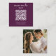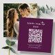 Haga que el proceso RSVP de su boda sea fluido, con nuestra tarjeta de código QR RSVP. Esta tarjeta de personalizable compacta presenta letras blancas modernas con un fondo de ciruela profundo. La parte delantera incluye un área de texto de personalizable y un espacio para generar un código QR único para que los huéspedes puedan RSVP fácilmente a través de sus smartphones. Vaya a la opción "personalizar", agregue la dirección URL de su sitio web boda al área proporcionada, y se generará un código QR en el diseño sólo para usted. Al revés, añade un toque personal con una foto. Haga que su día especial sea aún más memorable con esta tarjeta de gabinete boda funcional y de moda.