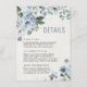La tarjeta de detalles de boda de invierno floral elegante presenta un ramo de flores de acuarela gris elegante y azul helado con vegetación de tonos helados. Por favor, contácteme para cualquier ayuda en personalización o si necesita cualquier otro producto con este diseño.