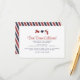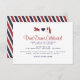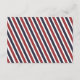 Una tarjeta de recepción para coordinar con el conjunto de invitaciones 'Correo Aéreo'. Mostrado en tonos de azul marino y rojo. Espacio para imprimir los detalles de la recepción en la parte delantera, con un patrón de rayas diagonales decorativas en la parte posterior. Si es necesario, el patrón se puede eliminar e imprimir texto adicional en la parte posterior.