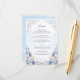 This romantic wedding details design features powder blue watercolor florals, soft blush accents, and delicate vintage-inspired scrollwork. The graceful layout is ideal for sharing reception, accommodation, RSVP, and wedding website information in a polished and elegant way. Its airy botanical styling suits classic, formal, garden, and timeless wedding themes beautifully. The soft blue palette and ornate floral framing make it a lovely coordinating piece for a refined wedding stationery suite.