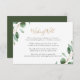 Diseñado para coordinar con nuestra colección de boda Moody Greenery, esta tarjeta de Pozo de Deseos personalizable presenta hojas de eucalipto de greenery en acuarela con texto en dorado y gris. Para realizar cambios avanzados, seleccione la opción "Haga clic para personalizar aún más" en Personalizar esta plantilla.