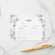 Tarjeta De Recepción Purple Lylac Floral Bridal Shower Recipe Card
