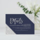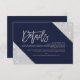 Tipografía plateada sobre el bloque de color purpurina color azul marino de personalizable y franjas geométricas falsas moda direcciones y detalles bodas , perfecto para una boda elegante,
