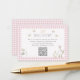 Añada un toque encantador a su ducha de bebé con esta tarjeta de registro de regalo de gingham rosa. Con un dulce ilustracion acuático de una mami de oca y un bebé chismorreando con delicadas mareas, esta tarjeta facilita a los huéspedes el acceso a los detalles del registro de bebés. Se incluye un cómodo código QR para un acceso rápido, junto con espacio para la información del registro y la fecha de vencimiento. Perfecto para cursar invitaciones, este diseño combina la practicidad con el encanto caprichoso. Copyright Anastasia Surridge, todos los derechos reservados.