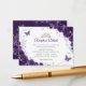 Purple silver and white floral Quinceanera reception details enclosure cards. Features, script font, silver butterflies, watercolor roses and tiara. Perfect for an elegant princess style glam celebration. Personalize with your own details.