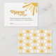 ¿Buscas la papelería perfecta para tu ducha de bebé con luz solar? No busque más y venga a nuestra tarjeta Ray of Sunshine Retro Baby Shower Diaper Raffle Enclosure Card. Este bonito y feliz libro para la tarjeta de bebé tiene un diseño retro amarillo que le dará una sonrisa a los clientes. El luminoso sol amarillo y los toques retro de boho hacen que esta invitación sea realmente única, mientras que el diseño neutro en género lo hace perfecto para cualquier ducha de bebé. Ya sea que esperes a un niño pequeño, chica, o que tengas una sorpresa en el género, esta invitación marcará el tono para un evento alegre y memorable.