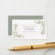 Con características delicadas flores de acuarela de jardín campestre verde, esta tarjeta de cierre de ducha de boda botánica chic se puede personalizar con la información de su evento especial, con un fondo de salvia plateada en el reverso. Diseñado por Thisisnotme©