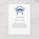 Traiga las vibraciones del océano a su celebración con esta tarjeta de despedida de soltera de cangrejo azul, parte de nuestra colección de invitaciones de boda costeras elegantes. Con original papelería de cangrejo pintada a la acuarela en tonos azules calmantes, esta tarjeta de boda con tema de playa añade un toque único a su ducha junto al mar. Perfecta como tarjetas de inclusión para boda oceánica o accesorios de ducha con tema de cangrejo náutico, es ideal para temas de despedida de soltera que los amantes de la playa adorarán. Explore más invitaciones únicas de ducha junto al mar de la colección de boda de playa de Zazzle por Victoria Grigaliunas en www.zazzle.com/dotellabelle o visite el tema completo de despedida de soltera de boda de playa en https://www.zazzle.com/collections/watercolor