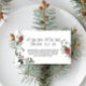 La Tarjeta de Receta Watercolor Winter Floral Bridal captura el romance y la belleza de un maravilloso paisaje invernal con un toque de encanto festivo. El diseño cuenta con un ilustracion acuarela de ramas siempre verdes empolvadas de nieve, creando un suave y encantador telón de fondo para una celebración. Las flores rojas y las bayas están entretejidas con la vegetación, lo que le da al diseño un toque de invierno estacional y elegante. El guión moderno y único añade un toque personal y contemporáneo, con letras fluidas que evocan una sensación de calidez y alegría en medio del paisaje nevado. El contraste de verdes profundos y rojos brillantes realza el ambiente festivo, lo que hace que este lugar sea perfecto para una ducha nupcial de invierno. Elementos coincidentes disponibles.