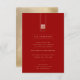 Diseño simple clásico de rectángulo alto con símbolo auspicioso de doble felicidad en hoja de oro falso y rojo para cualquier boda china, oriental o asiática. Fácil de personalizar por tu cuenta.