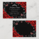 Red black silver Quinceanera reception details enclosure cards. Features, script font, glitter silver butterflies, watercolor roses and tiara. Perfect for an elegant princess style glam celebration. Personalize with your own details.