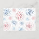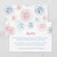 Una tarjeta de inserción de invitación flexible (mostrada aquí para un registro pero todo el texto se puede personalizar según tus necesidades). El diseño presenta fuegos artificiales pintados a mano con acuarela en rojo y azul sobre un fondo blanco.