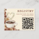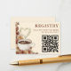 Deja que el amor se cocine a fuego lento con esta tarjeta de registro de desayuno de novia Love is Brewing cálida y acogedora con código QR. Diseñada en tonos terrosos crema y marrón claro, con un ramo floral que rodea una taza de café llena de corazón, esta papelería es perfecta para un evento de primavera u otoño. Personalízala con los detalles de tu evento para una celebración previa a la boda única que la novia nunca olvidará.