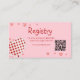 Compartir el registro de duchas de boda o de novias de forma sencilla y elegante con esta tarjeta del registro de personalizados. Diseñado con un ambiente retro-groovy, cuenta con un suave fondo rosado, alegres corazones rojos y rosados a cuadros y la frase "El amor está en el aire". Cada tarjeta puede ser personalizada con su código QR y enlace a su sitio web, lo que facilita a los huéspedes el acceso a sus datos de registro al instante. La combinación de la comodidad moderna y el diseño de estilo vintage garantiza que su papelería sea práctica y moda. Perfecto para duchas de novias, bodas o fiestas de compromiso, esta tarjeta del recinto le aporta un toque de atención que complementa su tema romántico.
