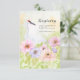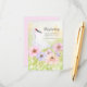 Esta tarjeta de registro de despedida de soltera presenta una acuarela pintada a mano de una grulla trompetera elegante rodeada de suaves anémonas rosadas, violetas y melocotón. Simbolizando devoción y nuevos comienzos, la obra de arte botánica romántica añade un toque cálido y significativo a la celebración.