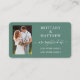 Tarjeta de Inserción de Registro de Boda de Caligrafía Moderna y Tendencia. Foto en la parte frontal. Verde Eucalipto