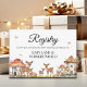 Una encantadora ducha de bebé Tarjeta de clausura para el Registro de Regalos con ciervos sonrientes, hongos de hadas y elegante caligrafía! Puede personalizar esto con sus propios detalles.
